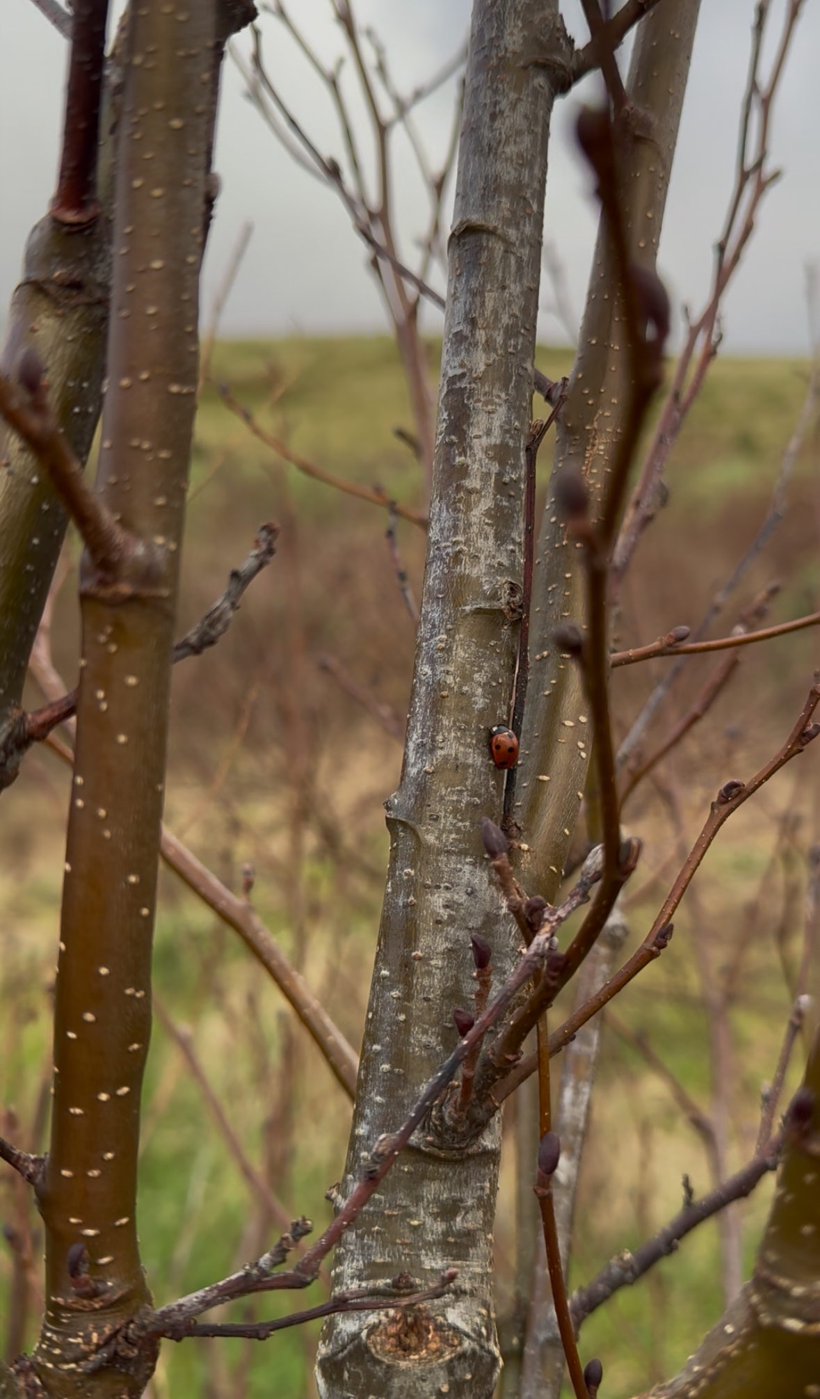 The site is a fully native broadleaf and Scots pine mix. This combination provides valuable diversity for the project - supporting a wide range of wildlife and creating a mix of habitat structures within the woodland. Walking the site, I could see this variety in action on a small scale. I wandered past rowan heavy with berries, oak galls tucked among the branches, and ladybirds settling into sheltered spaces between tree stems. It was also clear that the character of the island has shaped the way the woodland is developing. The sections closest to the sea show their resilience to stronger winds and salty air, adding to the uniqueness of the site and offering a visual reminder of the shelter these young trees are already beginning to provide. Even at this smaller scale, Sliddery Shore offers many benefits that come from planting native species suited to the landscape. The woodland sits on land previously used for grazing and improved grassland, meaning the shift from pasture to young native woodland already brings noticeable ecological change. This small pocket of woodland will expand local biodiversity and strengthen habitat networks across the island.